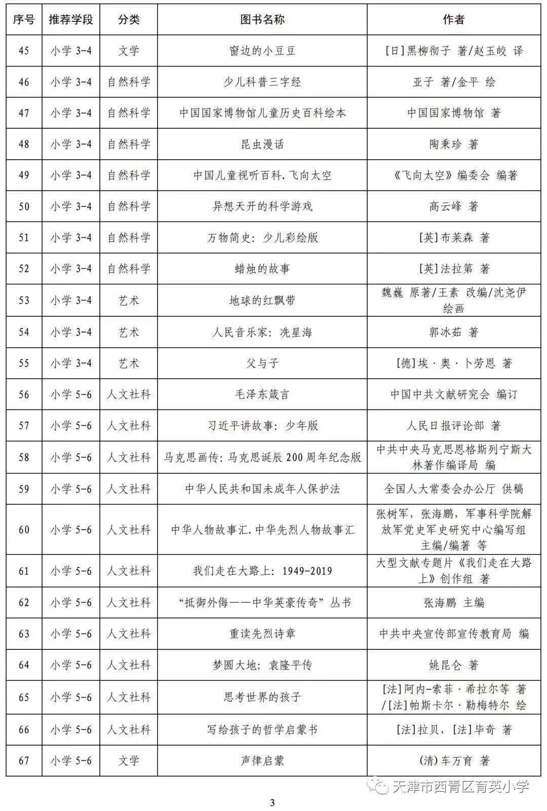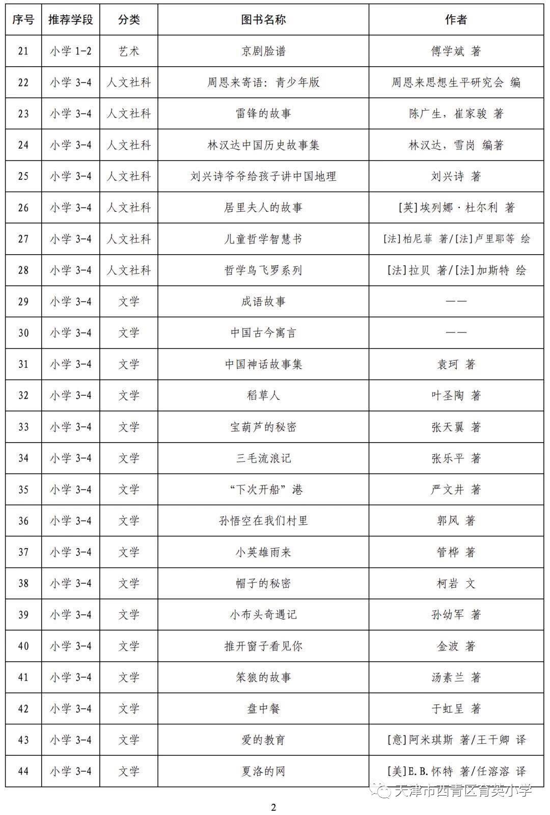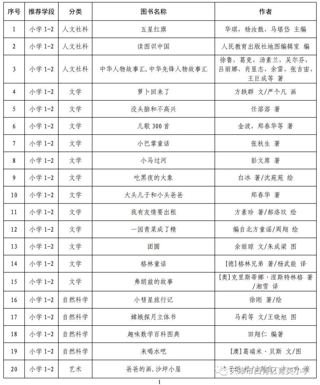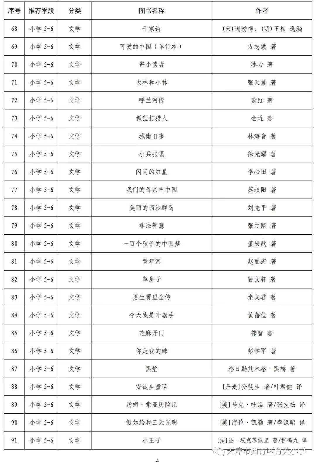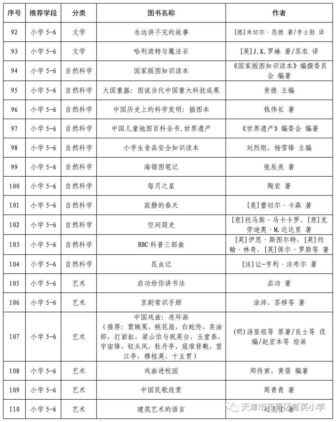 疫情期间,停课不停阅--小学阶段阅读指导目录