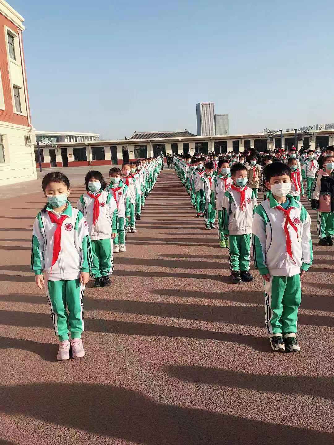 开学典礼,同学们排着整齐地队伍,高高兴兴地参加升旗仪式