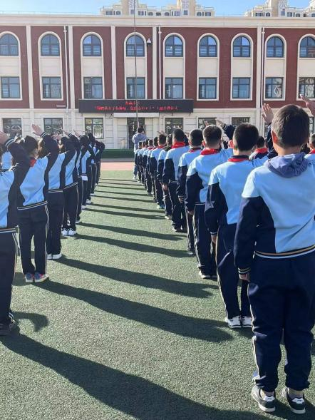 育英小学 组织了“喜迎二十大,奋进新征程”升旗仪式,同学们整好队伍,排在教学楼门前,整齐划一,鲜艳的红领巾在胸前随风飘扬,在蓝天的映衬下,光彩夺目,彰显了新时代小学生热爱祖国、昂扬向上的精神面貌。