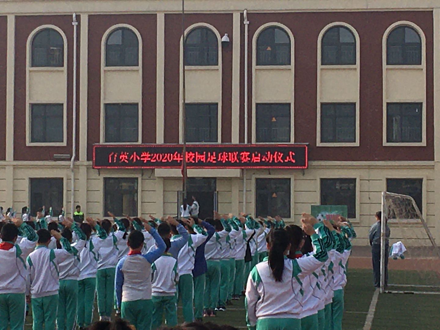 10月19日,育英小学在周一升旗时隆重举行了“校园足球联赛”启动仪式,同日,校园足球联赛拉开了帷幕。