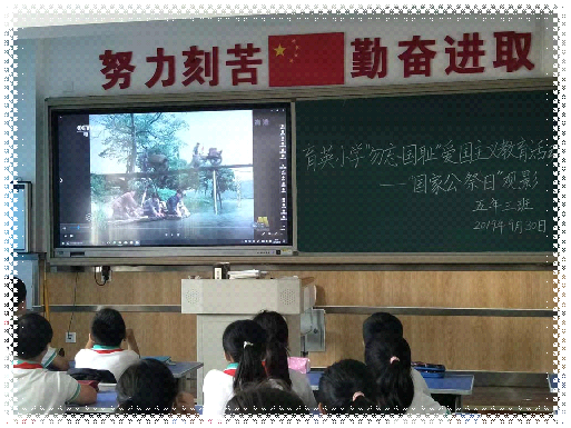 升旗仪式后,学校组织各班观看了红色影片《闪闪的红星》、《小兵张嘎》,以年轻的榜样引领广大少年儿童铭记历史、勿忘国耻,继承和发扬革命先烈的精神,用自己的行动向英雄致敬,向祖国致敬!