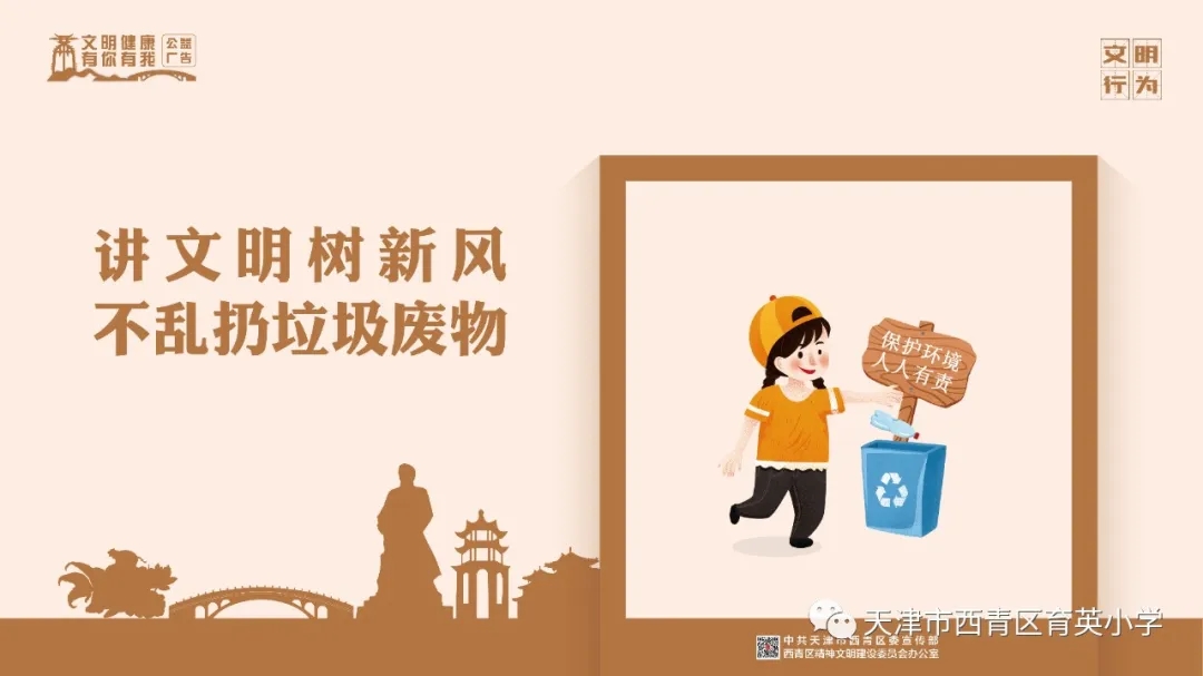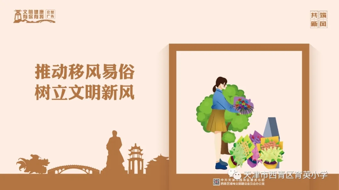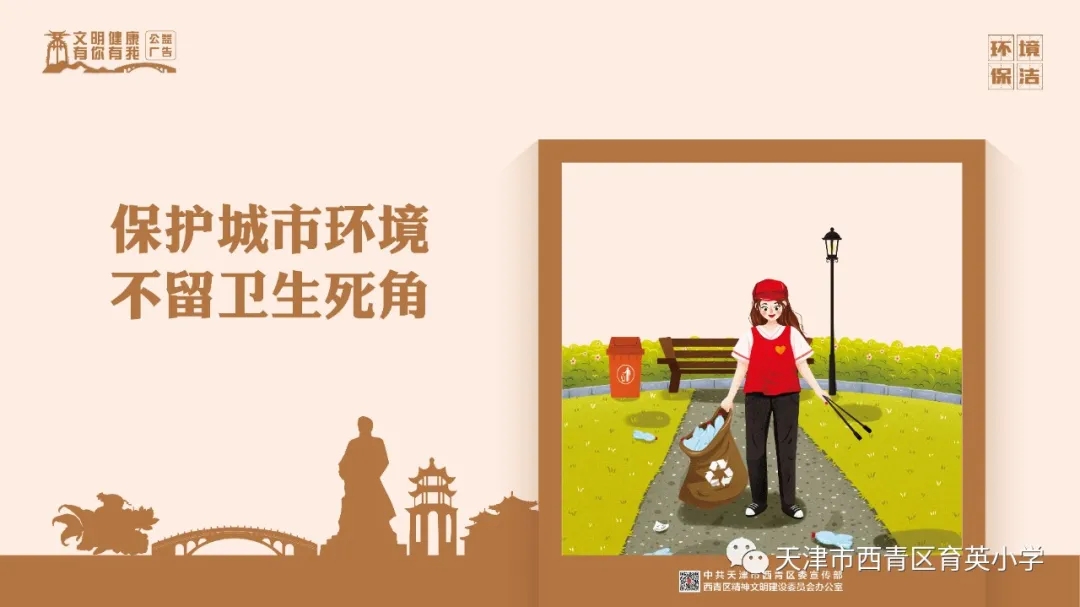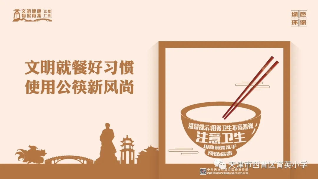 为贯彻落实中央文明办《关于开展“文明健康有你有我”公益广告宣传行动的函》,西青区文明办现组织开展“文明健康 有你有我”主题公益广告宣传行动,运用公益广告传播文明理念、弘扬时代新风。公益广告宣传围绕绿色环保、健康生活、文明行为、良好心态、环境保洁、共筑新风六大主题24个方面内容,融入西青历史文化元素,原创了两个系列、八组、48幅公益广告作品,将陆续推出。