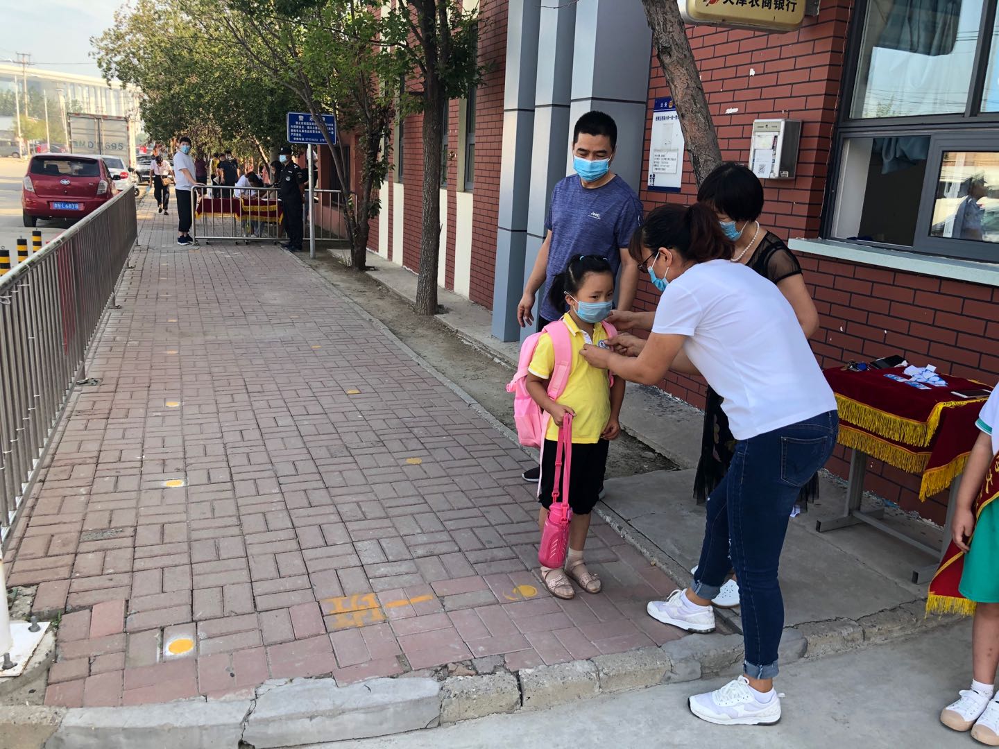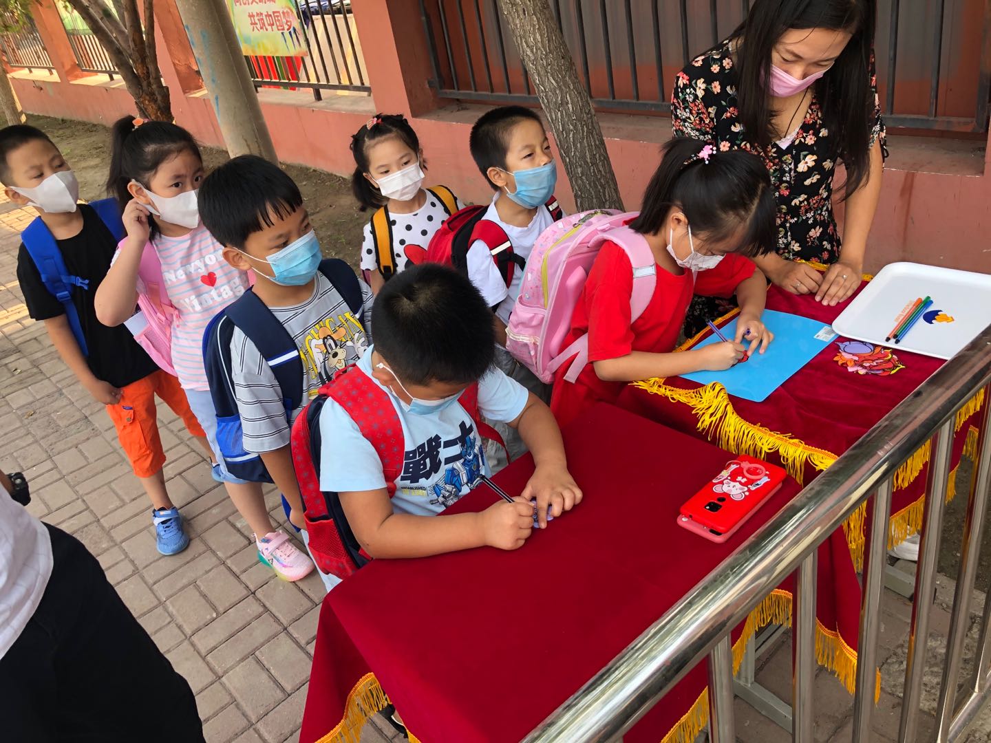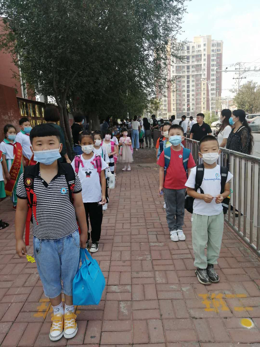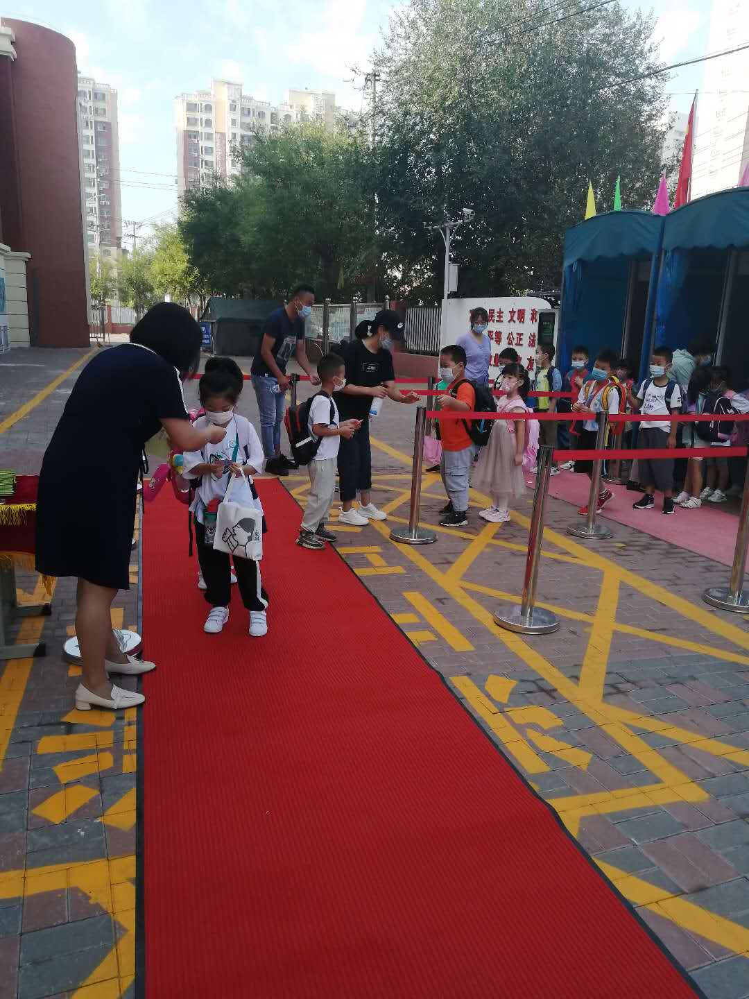 9月1日早晨,学校领导和老师们来到校门口准备迎接一年级新生的到来,三位班主任老师更是早早走进了整洁一新的教室等待着新入校的学生们。