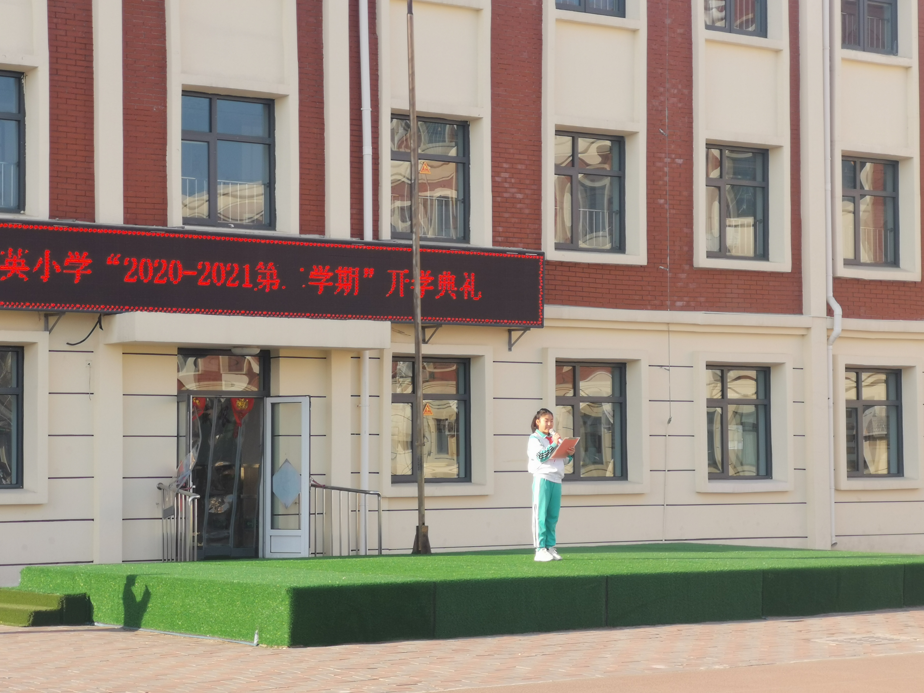来自五(1)中队的张艺馨同学也代表全体学生发言,2021年,恰逢伟大的中国共产党成立100周年,作为新时代的小学生,也应肩负起时代赋予的责任,努力学习知识,磨炼意志品质,在成长的道路上不断挑战自我,刷新自我,让自己成为一名合格的社会主义建设者和接班人。