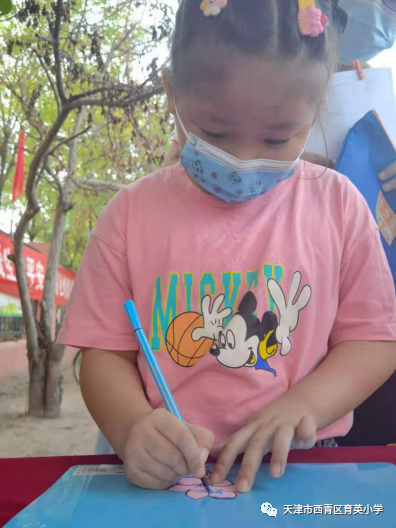 孩子们从老师手中郑重地接过代表对未来充满憧憬的梦想之花,并在上面一笔一划地认真写下自己的名字。